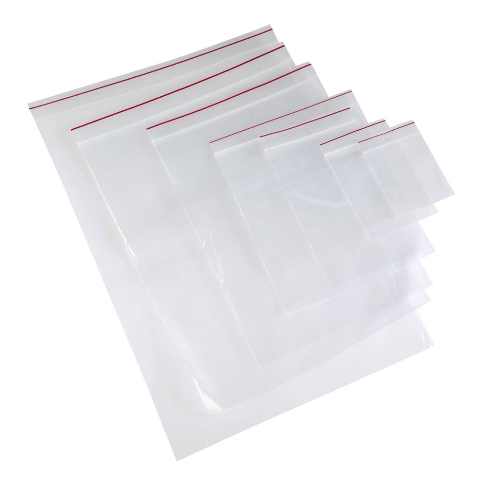 A full range of plain, low or high density bags of any size or thickness, with or without slip. Such bags may have a side seal or a press seal, a permanent tape or a resealable tape, an inside or an outside lip, a bottom gusset or a side gusset.